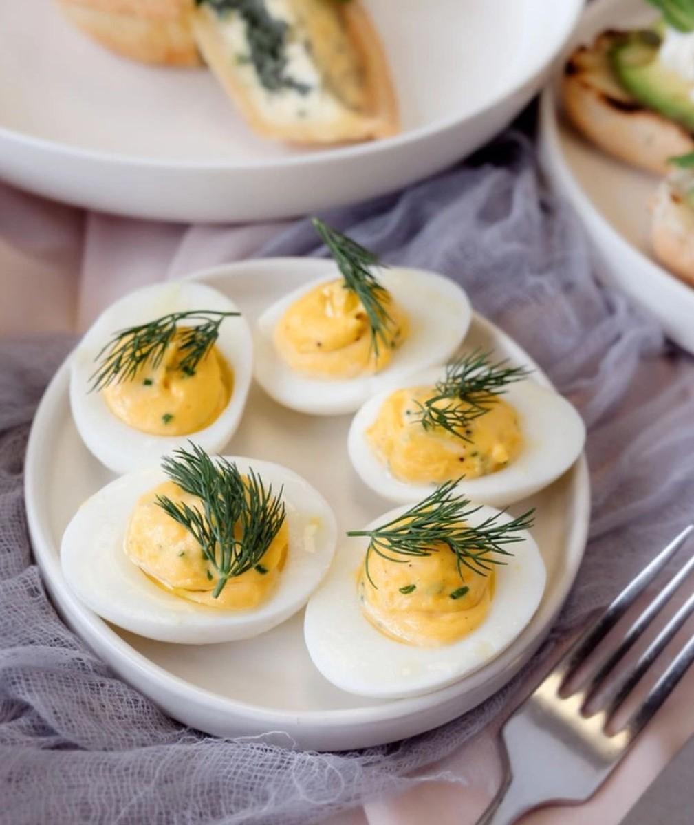 Tip: For a prettier presentation, use a piping bag with a star tip to fill the eggs — they look more festive for Easter or spring brunch!
